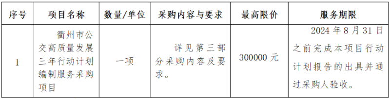 受浙江衢州公交集團有限公司委托,現(xiàn)就衢州市公交高質量發(fā)展三年行動計劃編制服務采購項目進行采購。本項目以競爭性磋商方式進行采購,歡迎合格的供應商參加。