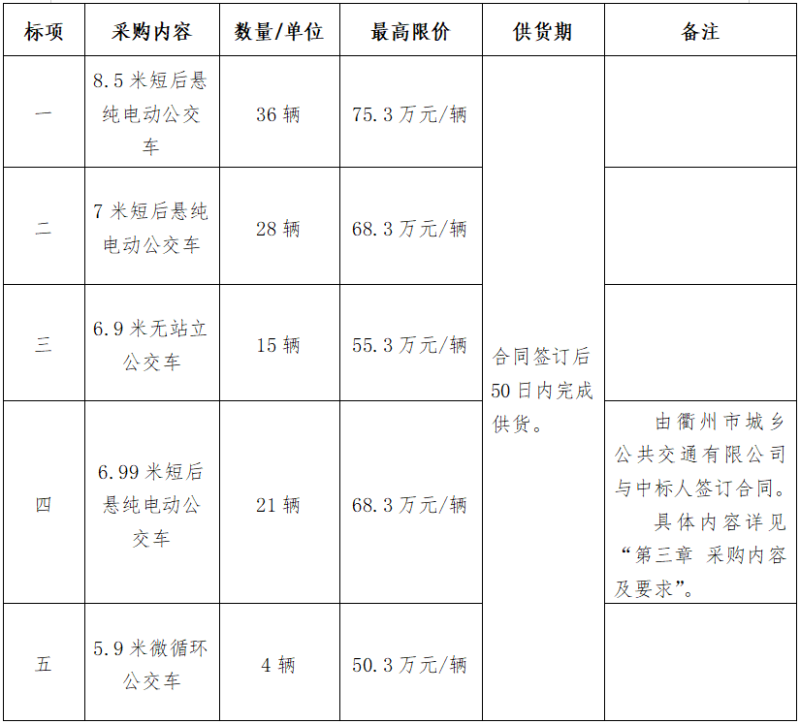 二、項目名稱:2024年度(第二批次)浙江衢州公交集團有限公司公交車采購項目