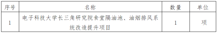 一、采購項目名稱:電子科技大學(xué)長三角研究院食堂隔油池、油煙排風(fēng)系統(tǒng)改造提升項目