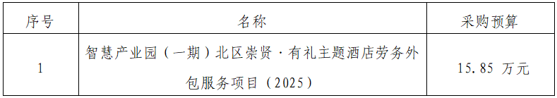一、采購(gòu)項(xiàng)目名稱(chēng):智慧產(chǎn)業(yè)園(一期)北區(qū)崇賢·有禮主題酒店勞務(wù)外包服務(wù)項(xiàng)目