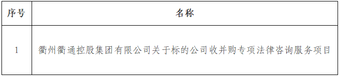 一、采購項目名稱:關于標的公司收并購專項法律咨詢服務項目