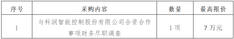 二、項(xiàng)目名稱:與科潤(rùn)智能控制股份有限公司合資合作事項(xiàng)財(cái)務(wù)盡職調(diào)查