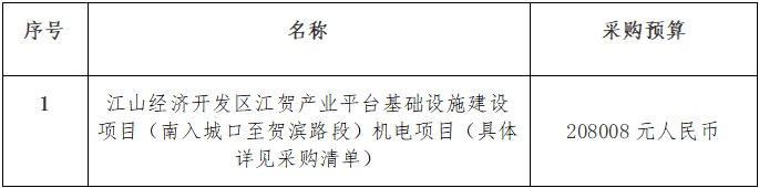 一、項(xiàng)目名稱:江山經(jīng)濟(jì)開發(fā)區(qū)江賀產(chǎn)業(yè)平臺(tái)基礎(chǔ)設(shè)施建設(shè)項(xiàng)目(南入城口至賀濱路段)機(jī)電項(xiàng)目