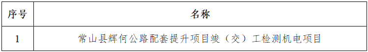 一、采購(gòu)項(xiàng)目名稱:常山縣輝何公路配套提升項(xiàng)目竣(交)工檢測(cè)機(jī)電項(xiàng)目