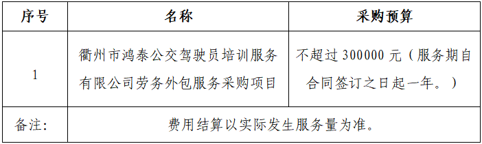 采購(gòu)人名稱:衢州市鴻泰公交駕駛員培訓(xùn)服務(wù)有限公司