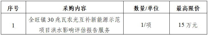 參照《衢州市市屬國有企業(yè)采購管理辦法(試行)》(衢國資發(fā)〔2025〕181號)等有關(guān)規(guī)定,以公開詢價方式對全旺鎮(zhèn)30兆瓦農(nóng)光互補(bǔ)新能源示范項(xiàng)目洪水影響評估報告服務(wù)進(jìn)行詢價采購,歡迎合格的供應(yīng)商參加。