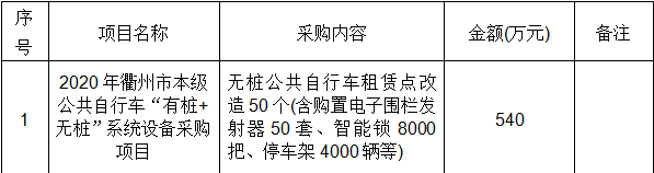 參照《中華人民共和國政府采購法》、《政府采購貨物和服務招標投標管理辦法》等規(guī)定,浙江中信工程咨詢有限公司受浙江衢州公交集團有限公司委托,就2020年衢州市本級公共自行車“有樁+無樁”系統(tǒng)設備采購項目進行公開招標采購,歡迎國內合格的供應商前來投標。
