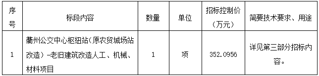 二、項目名稱:衢州公交中心樞紐站(原農(nóng)貿(mào)城場站改造)-老舊建筑改造人工、機(jī)械、材料項目