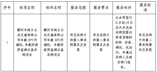 二、項(xiàng)目名稱:衢州市城鄉(xiāng)公共交通有限公司車載GPS終端機(jī)、車載防疲勞監(jiān)測(cè)設(shè)備采購(gòu)項(xiàng)目