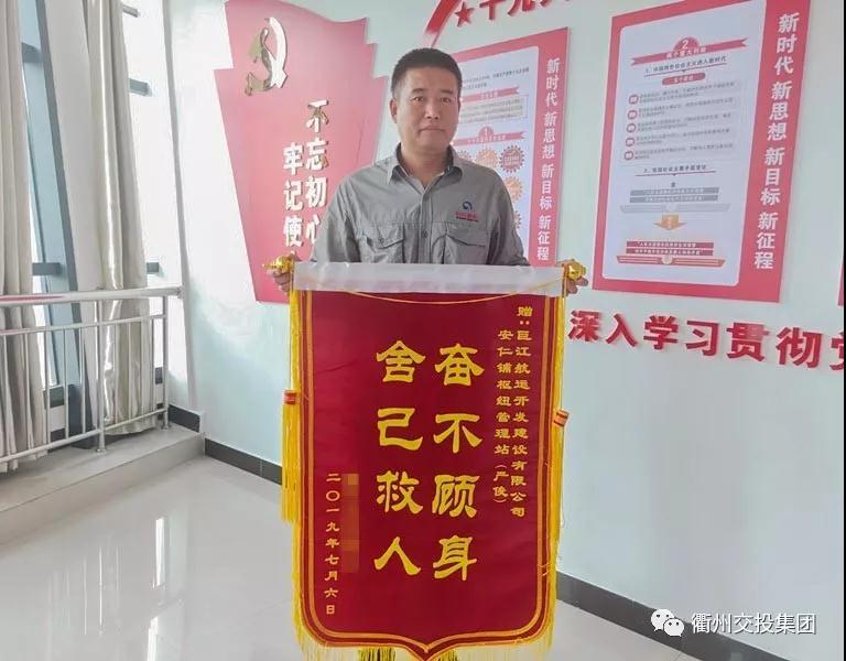 7月10日,市民張女士一行人把一面寫有“奮不顧身舍己救人”字樣的錦旗送到了集團下屬子公司——衢州市巨江航運建設(shè)開發(fā)有限公司下轄安仁鋪航電樞紐管理站,感謝該站職工嚴俊不顧自身安危,冒雨下河救人的義舉。“他救了人之后沒留名字就走了,我們打聽了很久,才知道是這里的員工,特地送面錦旗表達感激之情。”張女士說。