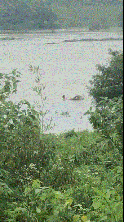隨著雨越下越大,落水女子的情況不容樂觀,嚴俊心里緊張起來,衡量了一下自己的水性,決定不再等待,直接下水救人。一名在江邊垂釣的漁民見狀也一起下了水。