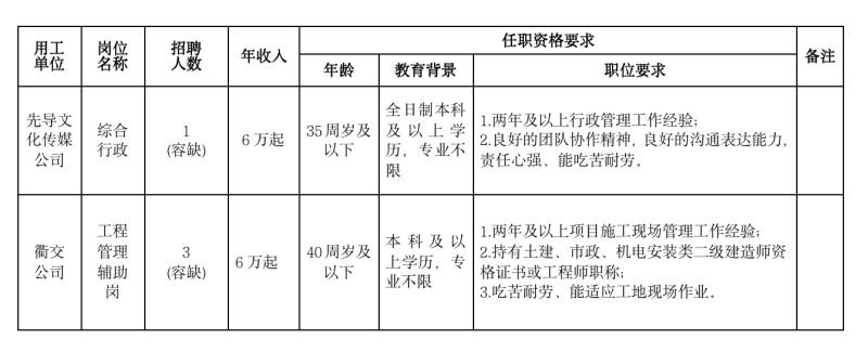 擬招聘綜合行政崗1名、工程管理輔助崗3名。