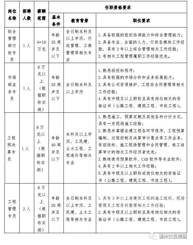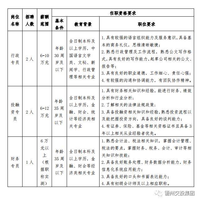 (一)衢州市交通投資集團(tuán)有限公司招聘崗位與人數(shù)見(jiàn)下表: